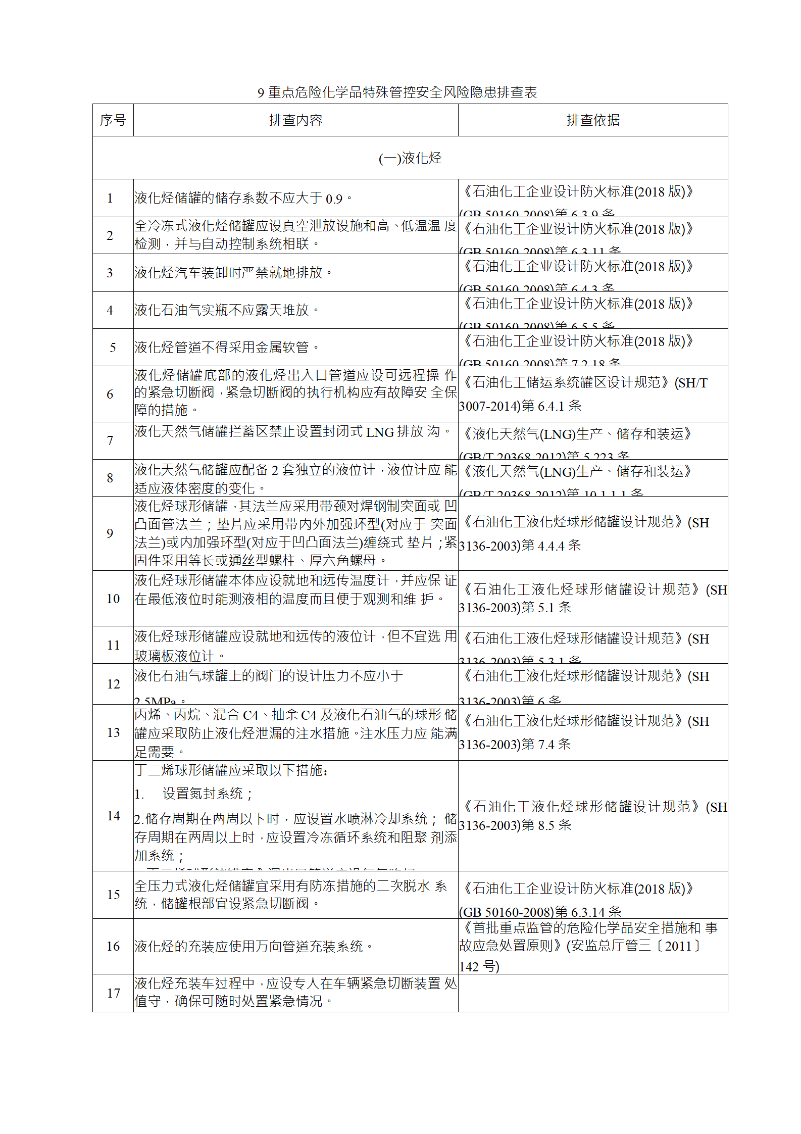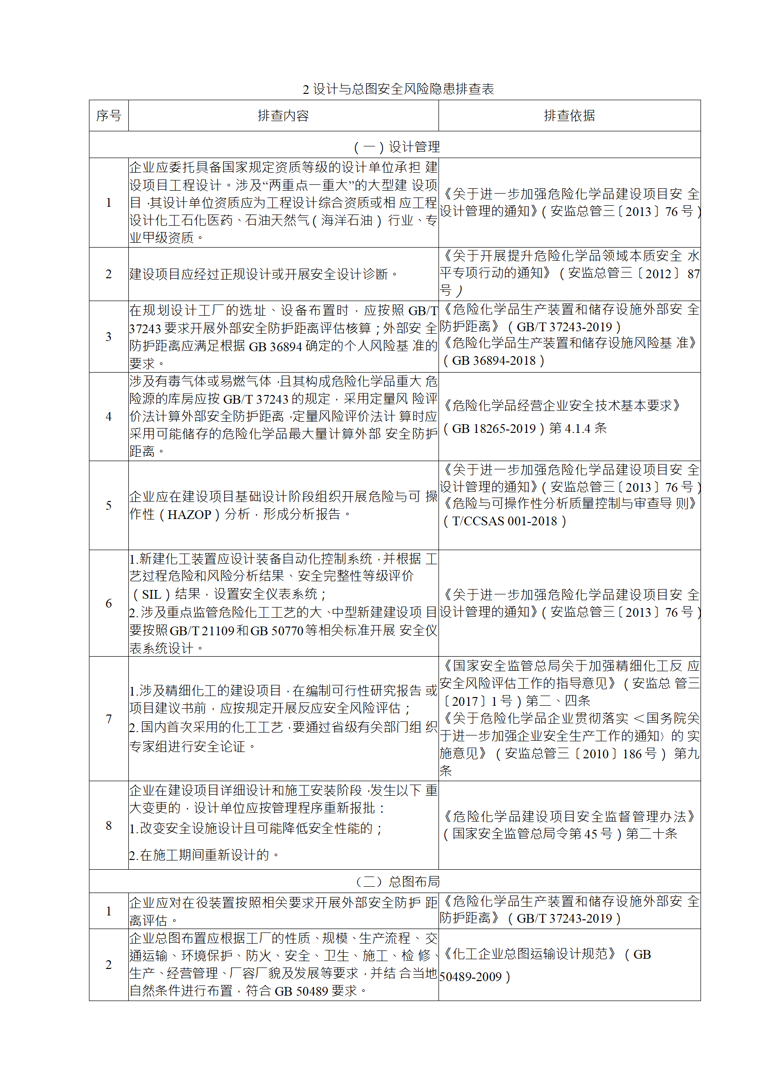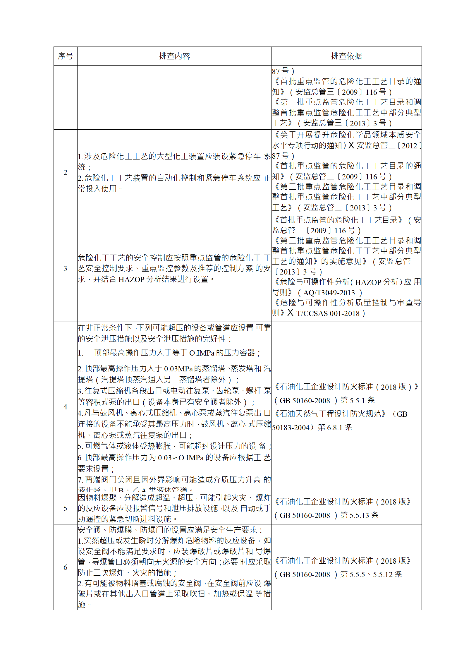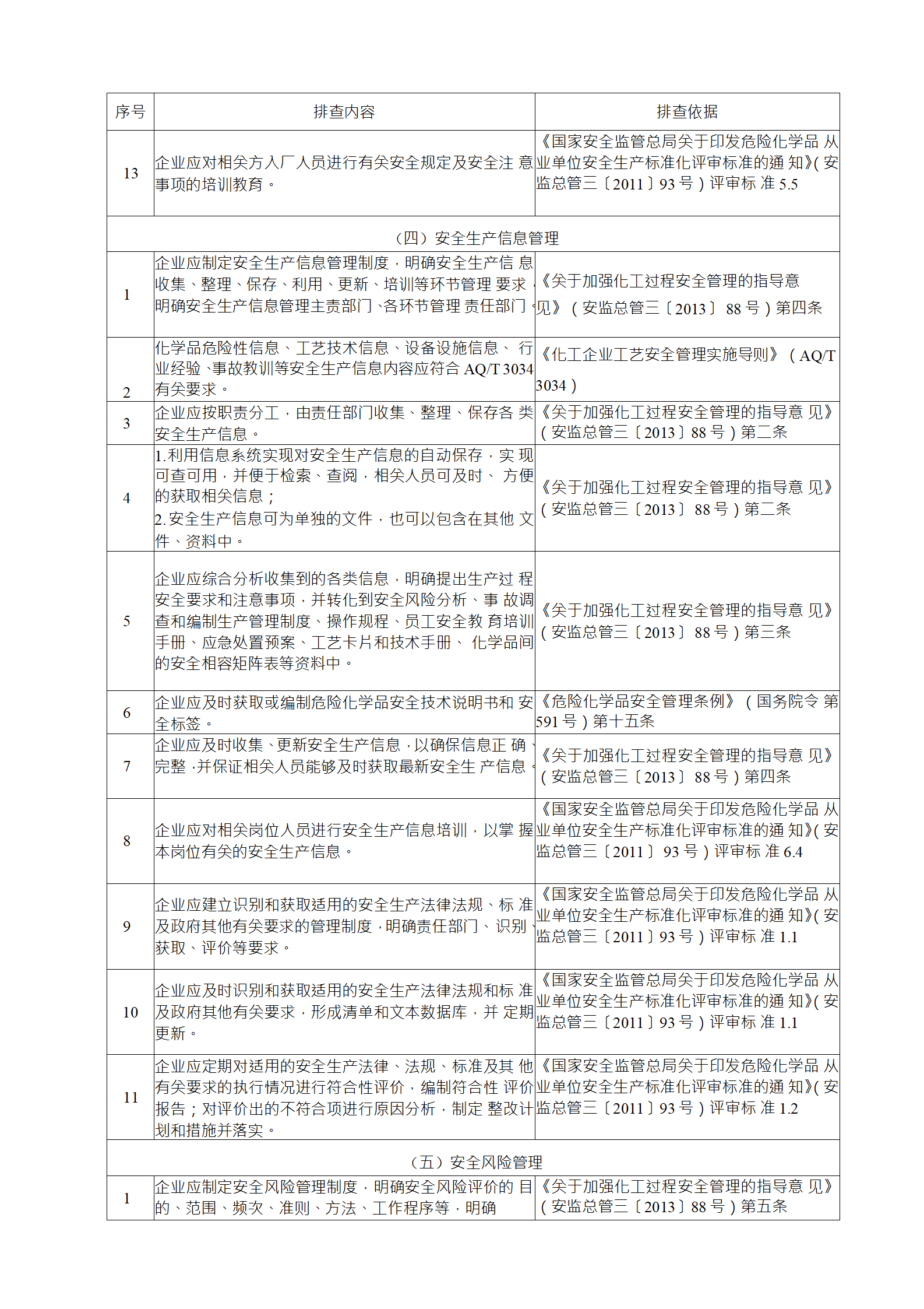 企業(yè)應結合自身安全風險及管控水平,按照化工過程安全 管理的要求,參照各專業(yè)安全風險隱患排查表(見附件),編制 符合自身實際的安全風險隱患排查表,開展安全風險隱患排查 工作。