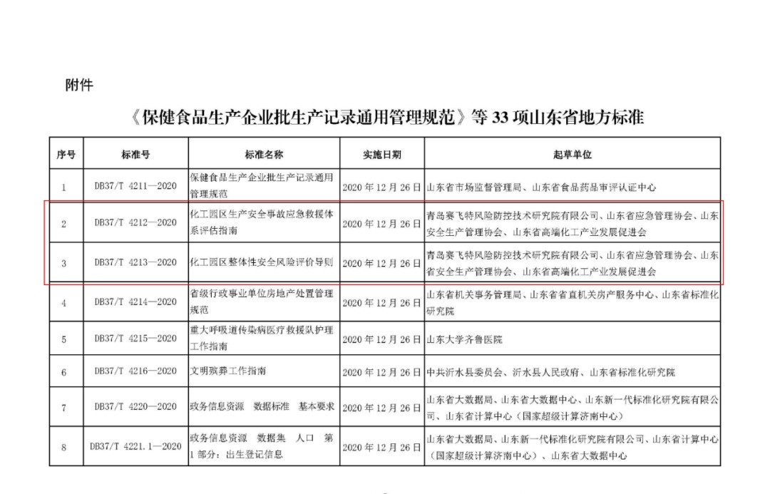 近日,山東省市場監(jiān)督管理局批準(zhǔn)發(fā)布了33項山東省地方標(biāo)準(zhǔn)。其中的《化工園區(qū)生產(chǎn)安全事故應(yīng)急救援體系評估指南》(DB37/T 4212-2020)、《化工園區(qū)整體性安全風(fēng)險評價導(dǎo)則》(DB37/T 4213-2020)由青島賽飛特風(fēng)險防控技術(shù)研究院有限公司、山東省應(yīng)急管理協(xié)會、山東省安全生產(chǎn)管理協(xié)會、山東省高端化工產(chǎn)業(yè)發(fā)展促進會聯(lián)合起草,現(xiàn)分享給各位: