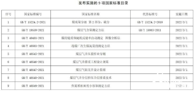 9項煤炭領域國家標準正式發(fā)布
