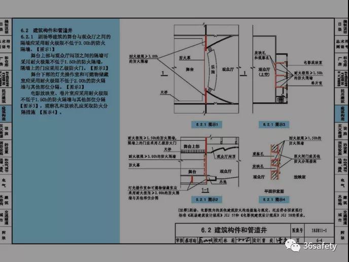 6.2.1 劇場(chǎng)等建筑的舞臺(tái)與觀眾廳之間的隔墻應(yīng)采用耐火極限不低于3.00h的防火隔墻。