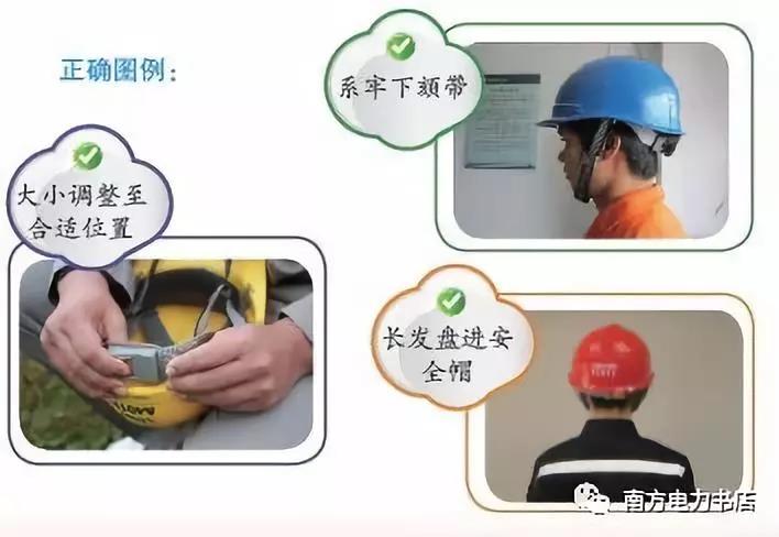 (3)系緊下頦帶,以防止工作過程中或外來物體打擊時脫落;長頭發(fā)應盤入帽內(nèi);戴好后應將后扣擰到合適位置,下頦帶和后扣松緊合適,以昂頭不松動、低頭不下滑為準。