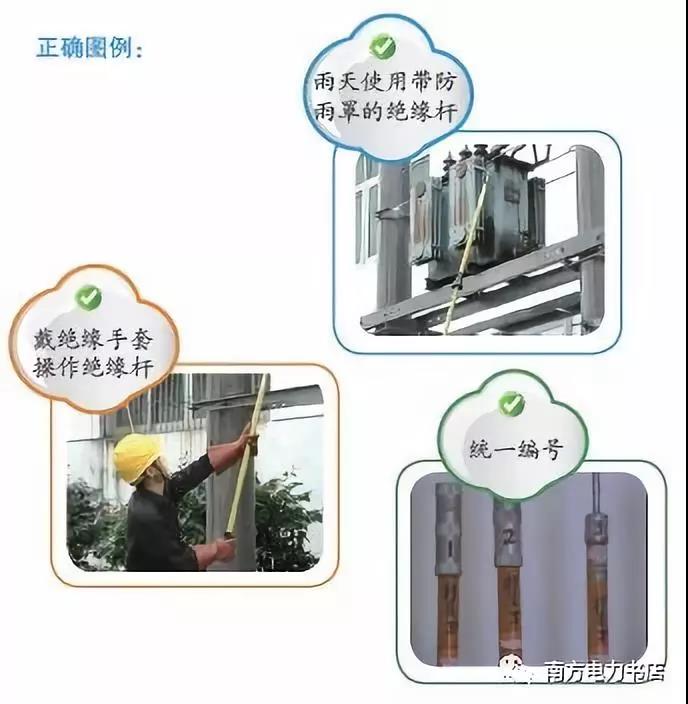 (2)操作人應戴絕緣手套,穿絕緣靴;下雨天用絕緣桿(棒)在高壓回路上工作,還應使用帶防雨罩的絕緣桿。