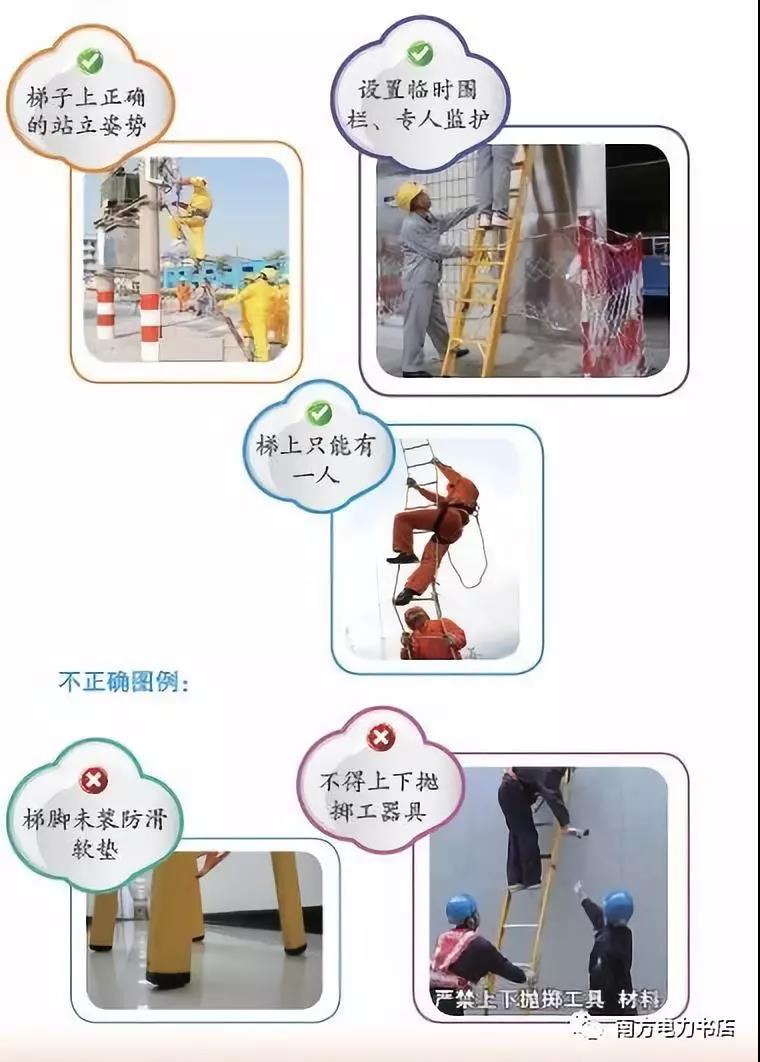 (6)在部分停電或不停電的作業(yè)環(huán)境下,應使用絕緣梯。在帶電設(shè)備區(qū)域中,距離運行設(shè)備較近時,嚴禁使用金屬梯。在戶外變電站和高壓室內(nèi)搬動梯子、管子等長物,應兩人放倒搬運,并與帶電部分保持足夠的安全距離,以免人身觸電氣設(shè)備發(fā)生事故。