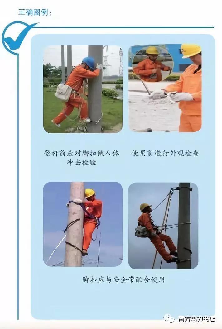 (2)按電桿直徑選擇腳扣大小,并且不準用繩子或電線代替腳扣綁扎鞋子。