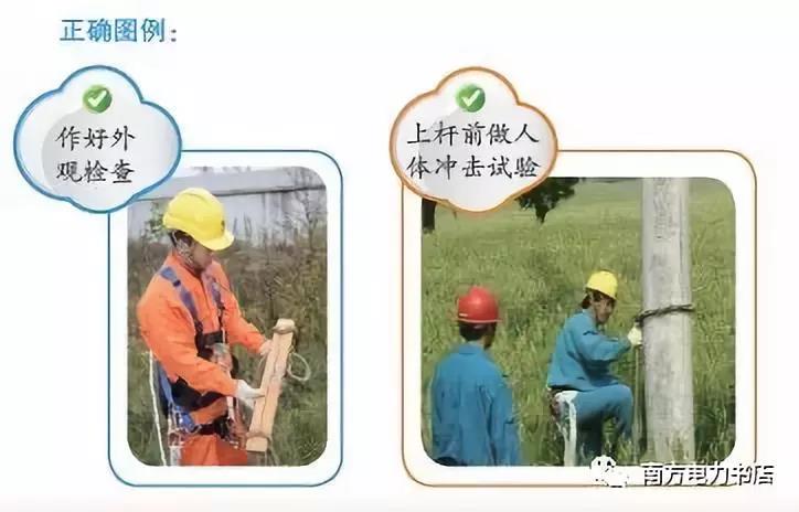(3)登桿時必須與安全帶配合使用以防登桿過程發(fā)生墜落事故。