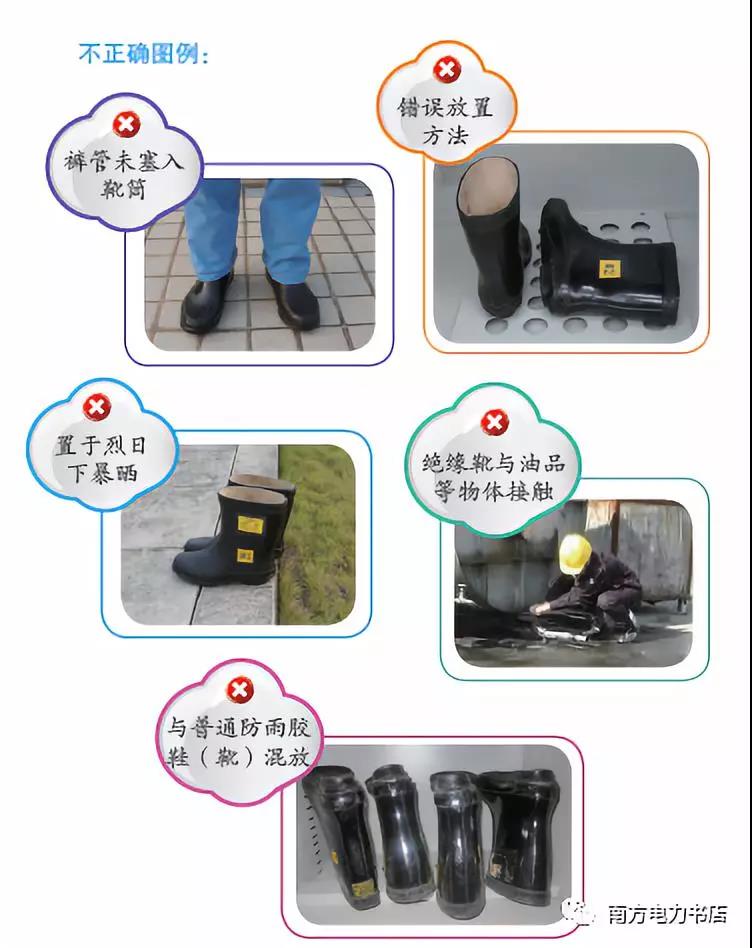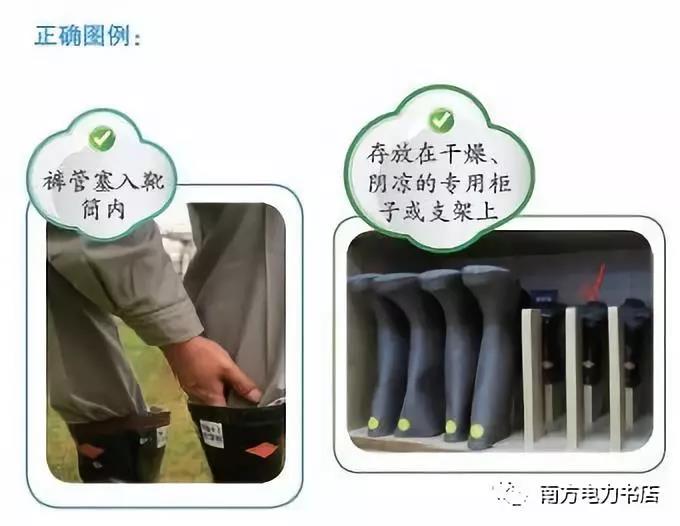 (2)使用絕緣靴應選擇與使用者相符合的鞋碼,將褲管套入靴筒內(nèi),并要避免絕緣靴觸及尖銳的物體,避免接觸高溫或腐蝕性物質(zhì)。