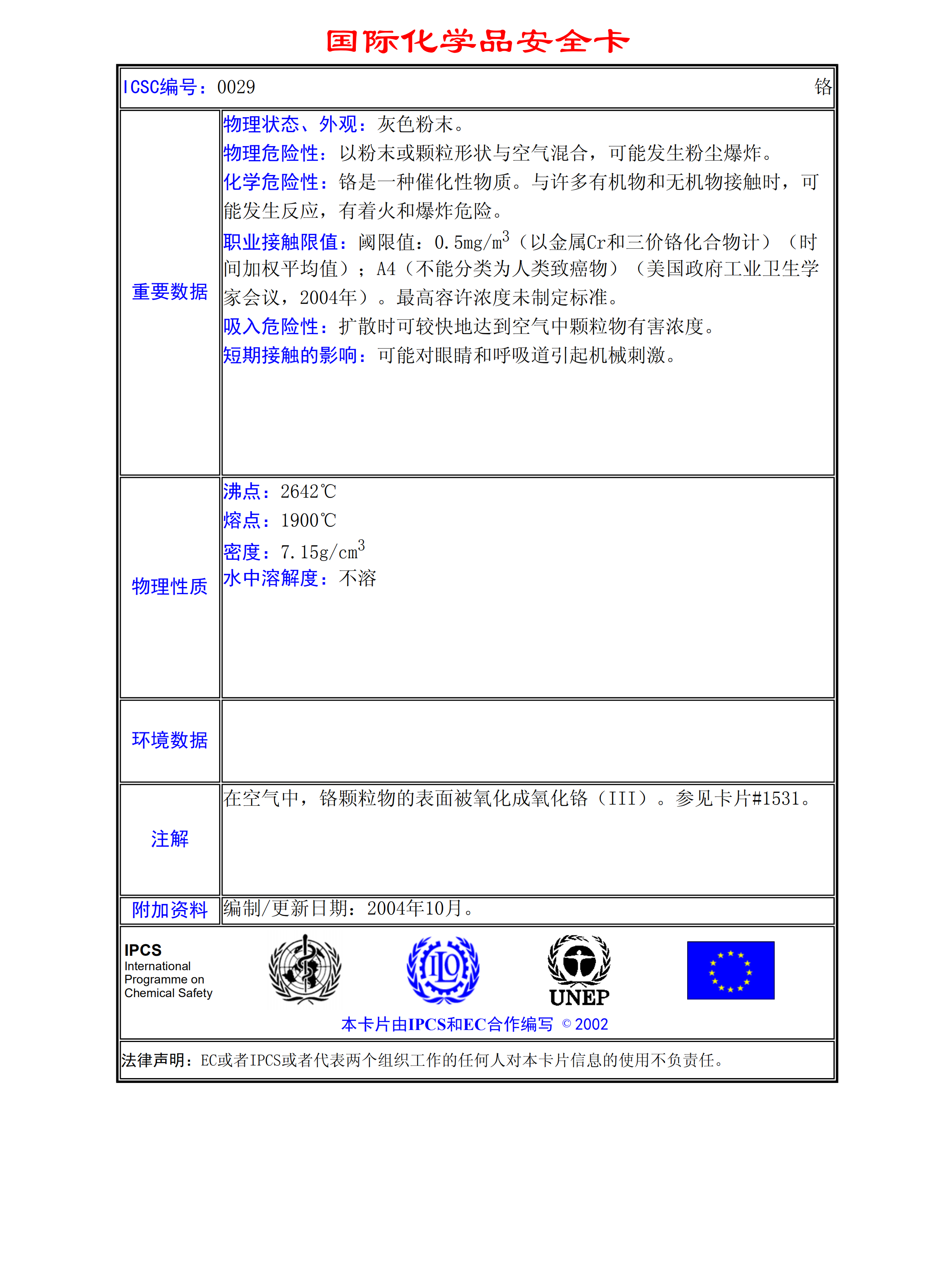 鉻MSDS