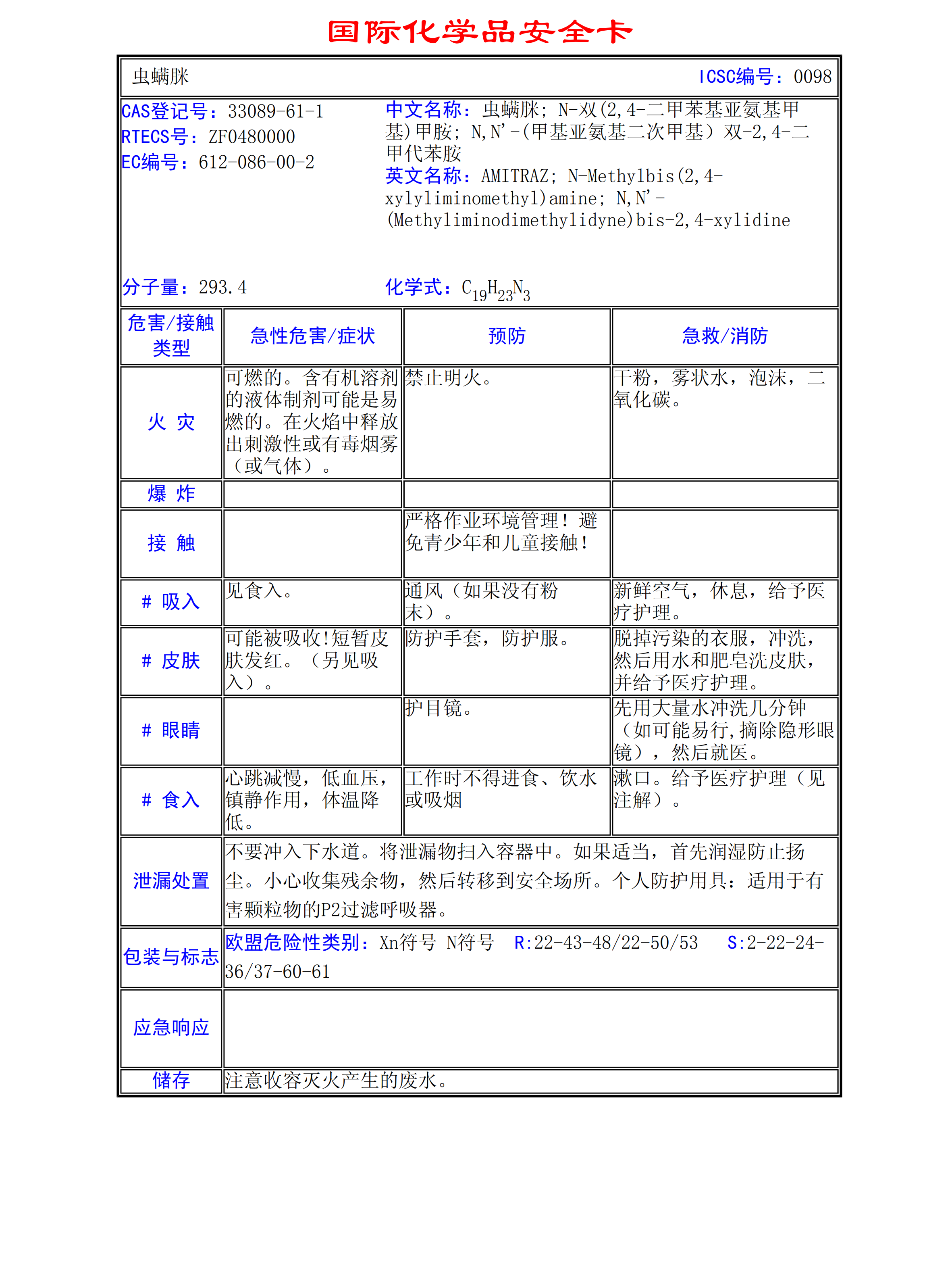 蟲螨脒MSDS