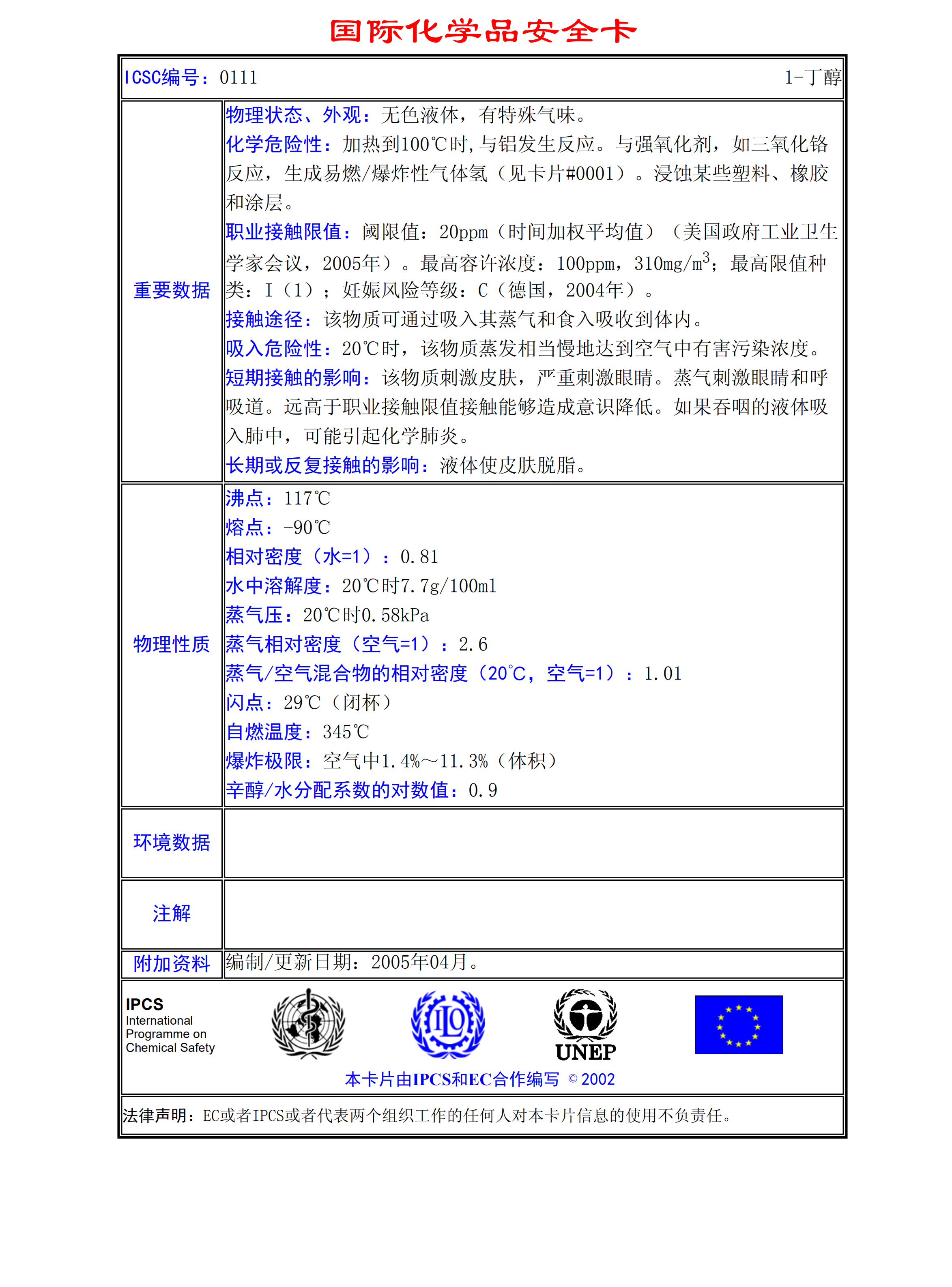 1-丁醇MSDS