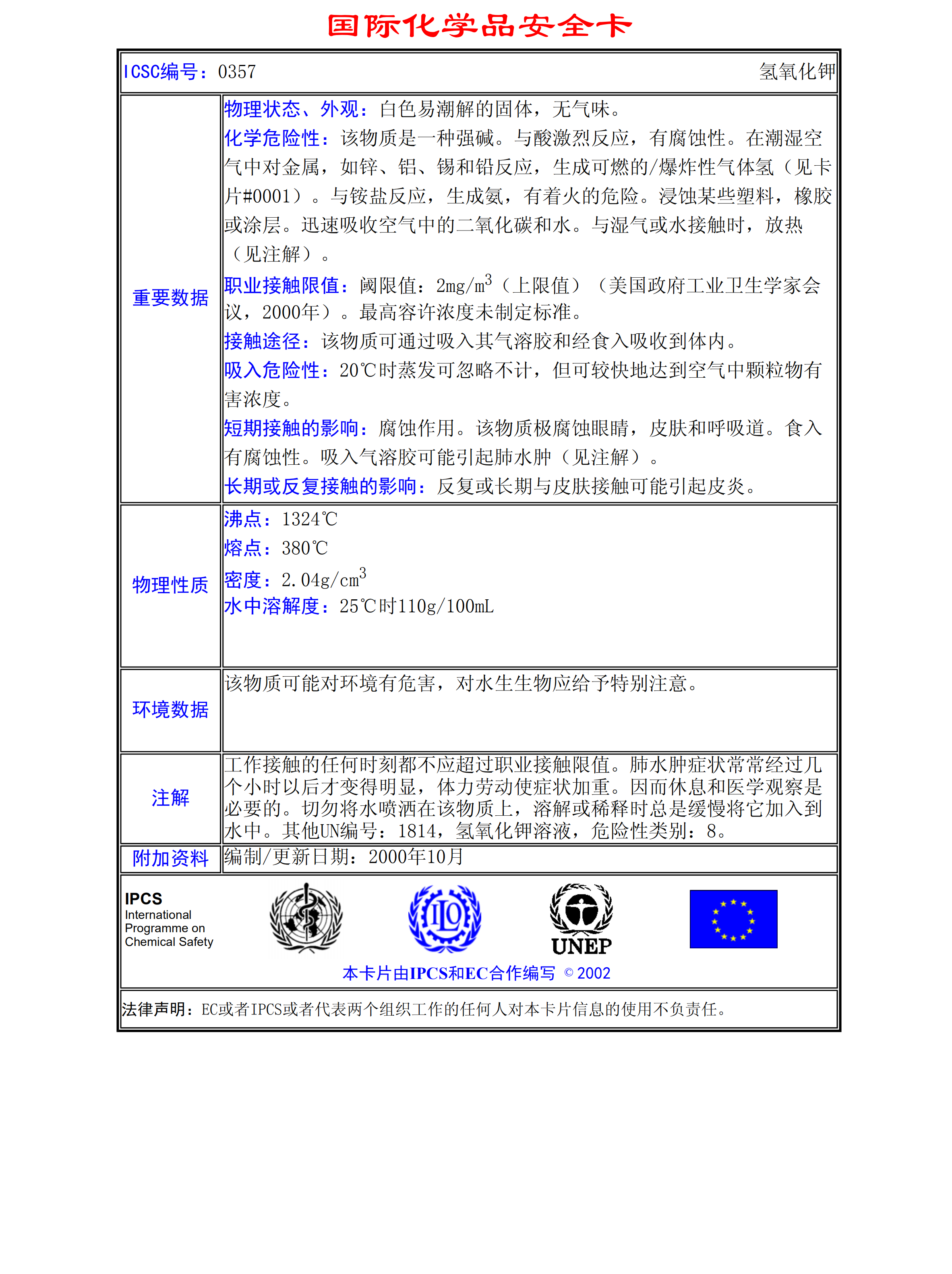 氫氧化鉀MSDS