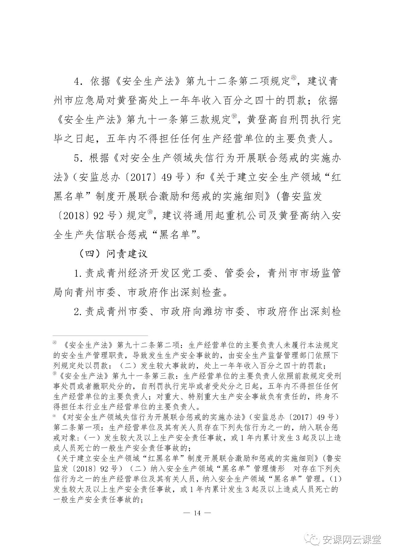 2020年5 月16 日,被青州市公安局采取監(jiān)視居住強制措施。涉嫌構(gòu)成重大責(zé)任事故罪,建議司法機關(guān)依法追究其刑事責(zé)任。建議由青州市紀(jì)檢監(jiān)察機關(guān)按規(guī)定及時給予其相應(yīng)的黨紀(jì)處分。