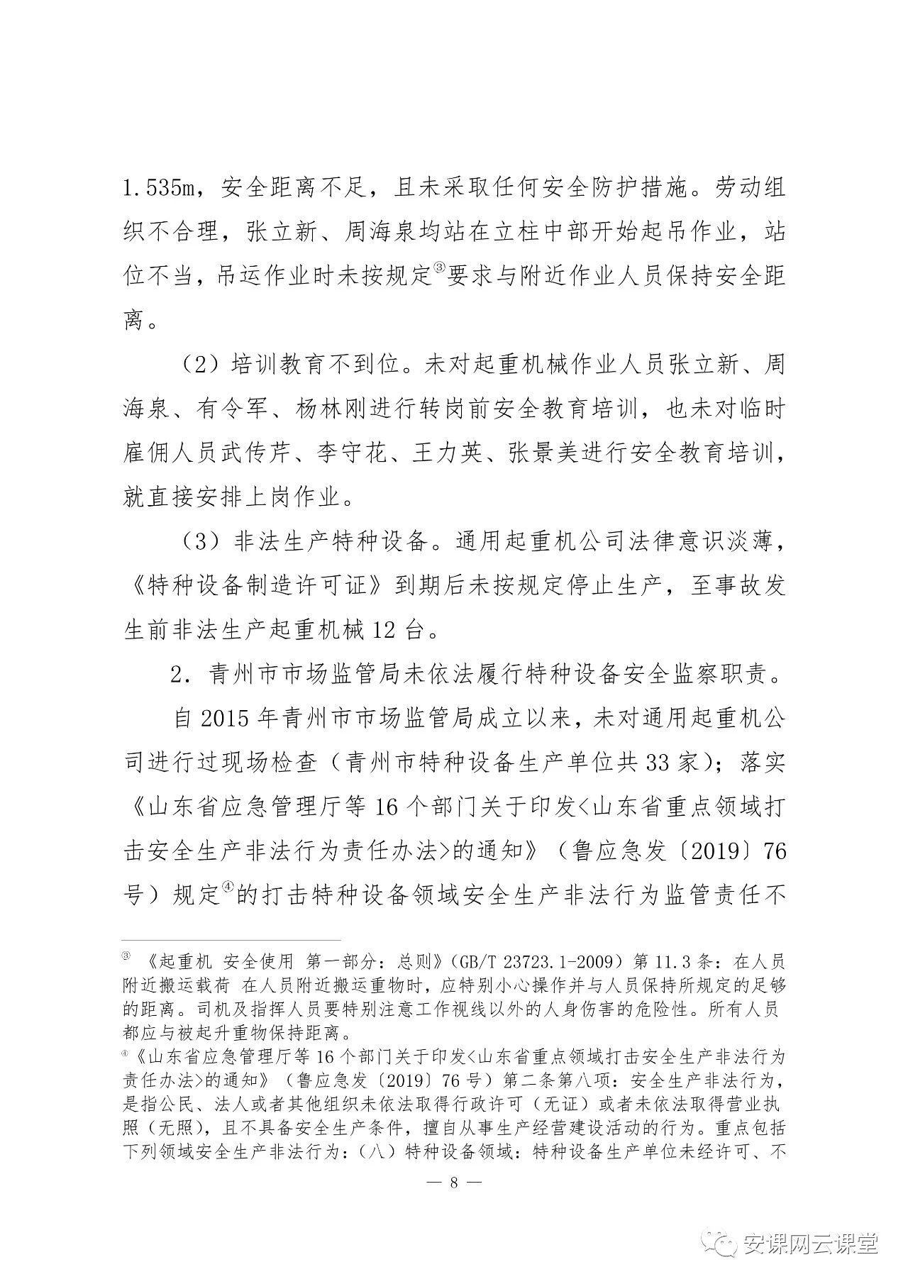 曹國偉,中共黨員,通用起重機公司副總經(jīng)理,對生產(chǎn)過程中存在的安全隱患督促指導(dǎo)整改不力,違章指揮未經(jīng)安全教育培訓(xùn)的工人上崗作業(yè),對事故的發(fā)生負(fù)有主要責(zé)任。
