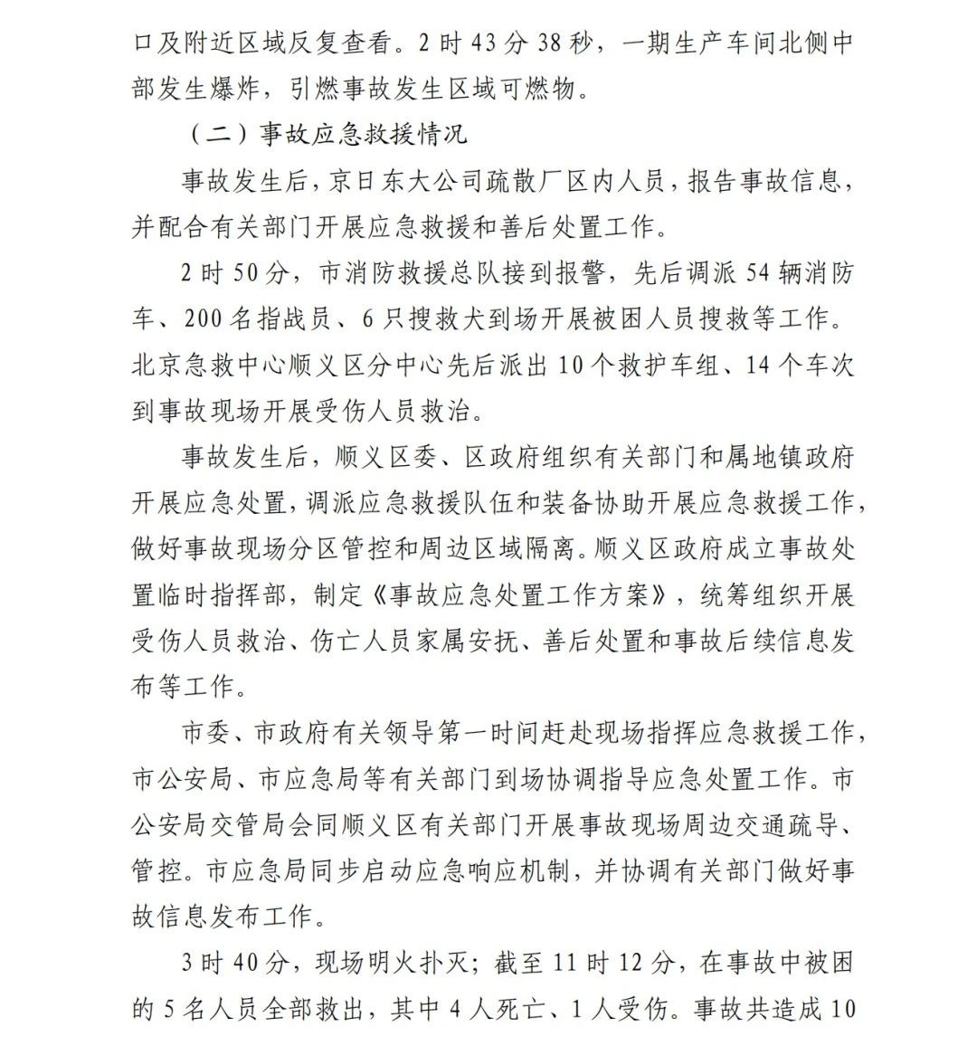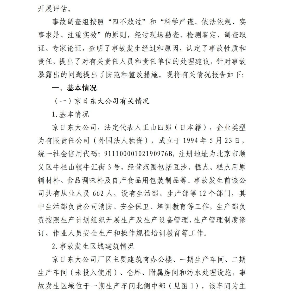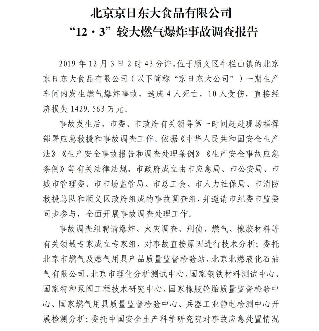 2019年12月3日2時(shí)43分許,北京順義區(qū)牛欄山鎮(zhèn)的(以下簡(jiǎn)稱(chēng)“京日東大公司”)一期生產(chǎn)車(chē)間內(nèi)發(fā)生燃?xì)獗ㄊ鹿?,造?人死亡,10人受傷,直接經(jīng)濟(jì)損失1429.563萬(wàn)元。