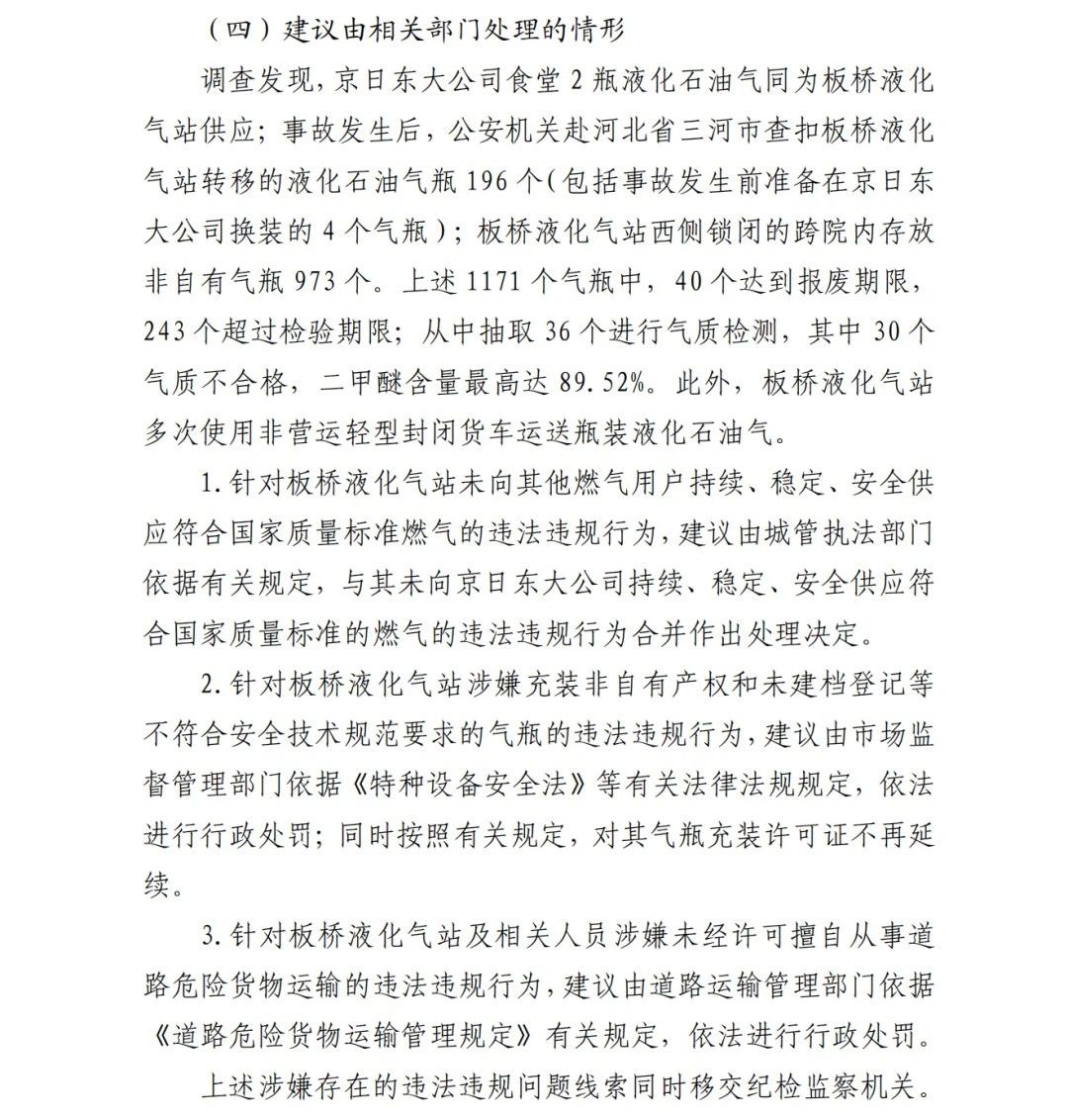 4.方勇忠,曾先后擔(dān)任京日東大公司生活部副部長(zhǎng)兼設(shè)備部部長(zhǎng)助理、設(shè)備部部長(zhǎng)、生產(chǎn)部部長(zhǎng)兼設(shè)備部部長(zhǎng)、總經(jīng)理助理(2019年4月辭職)。2006年負(fù)責(zé)京日東大公司一期生產(chǎn)車(chē)間建設(shè)工作,期間未委托具有相應(yīng)資質(zhì)的施工單位,組織本單位人員自行建設(shè)安裝燃?xì)庠O(shè)施,導(dǎo)致燃?xì)庠O(shè)施安全隱患長(zhǎng)期存在;2018 年負(fù)責(zé)一期生產(chǎn)車(chē)間內(nèi)新建冷藏庫(kù)建設(shè),將部分管道、閥門(mén)等燃?xì)庠O(shè)施封閉在通風(fēng)不良的場(chǎng)所內(nèi),且未設(shè)置通風(fēng)、燃?xì)庑孤﹫?bào)警等安全設(shè)施,對(duì)事故發(fā)生負(fù)有直接責(zé)任,涉嫌重大責(zé)任事 故罪。2020 年 1 月 23 日被順義公安分局刑事拘留,2 月 6 日取 保候?qū)?,建議依法追究刑事責(zé)任。