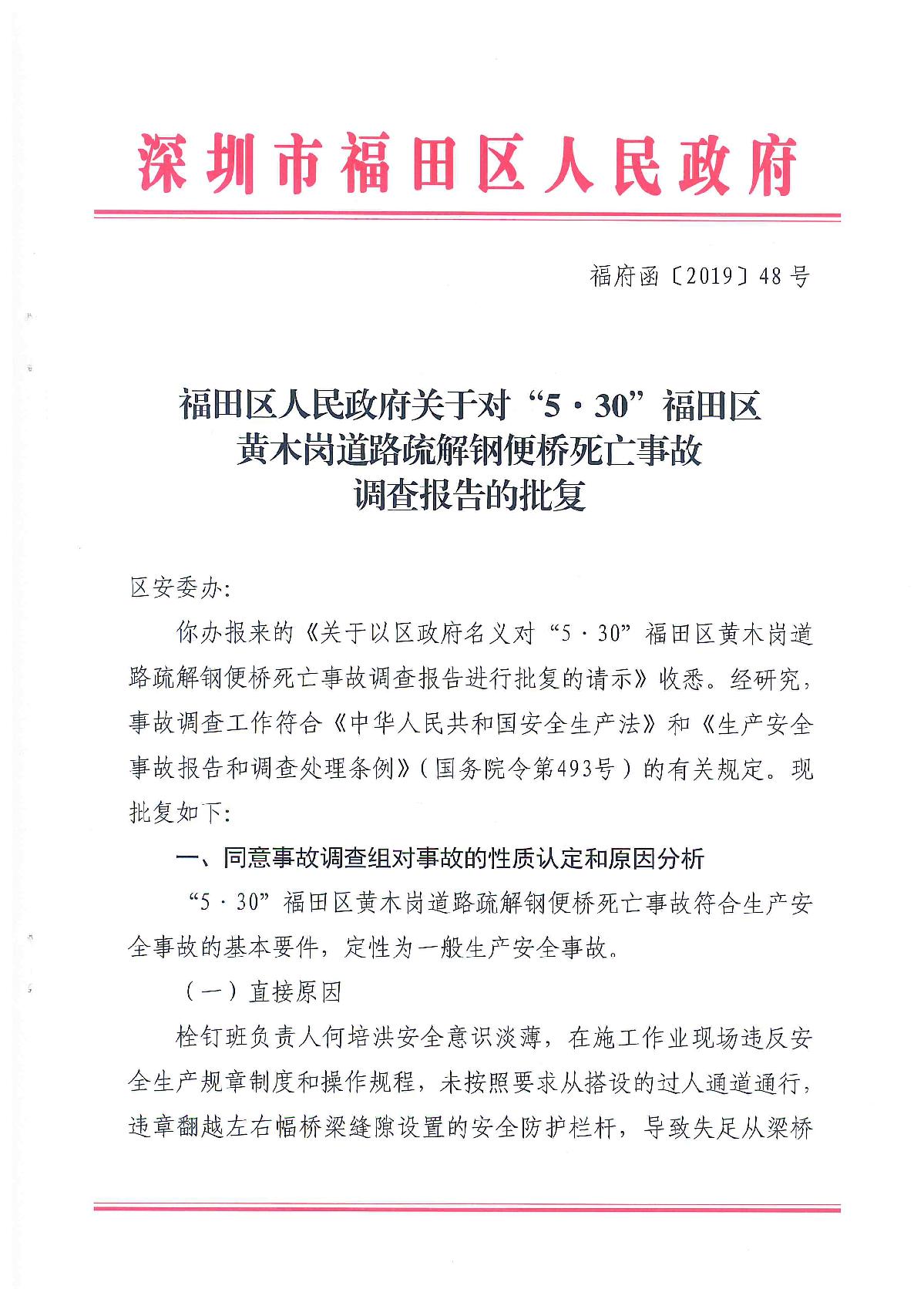 “5.30”福田區(qū)黃木崗道路疏解鋼便橋死亡事故調(diào)查報(bào)告