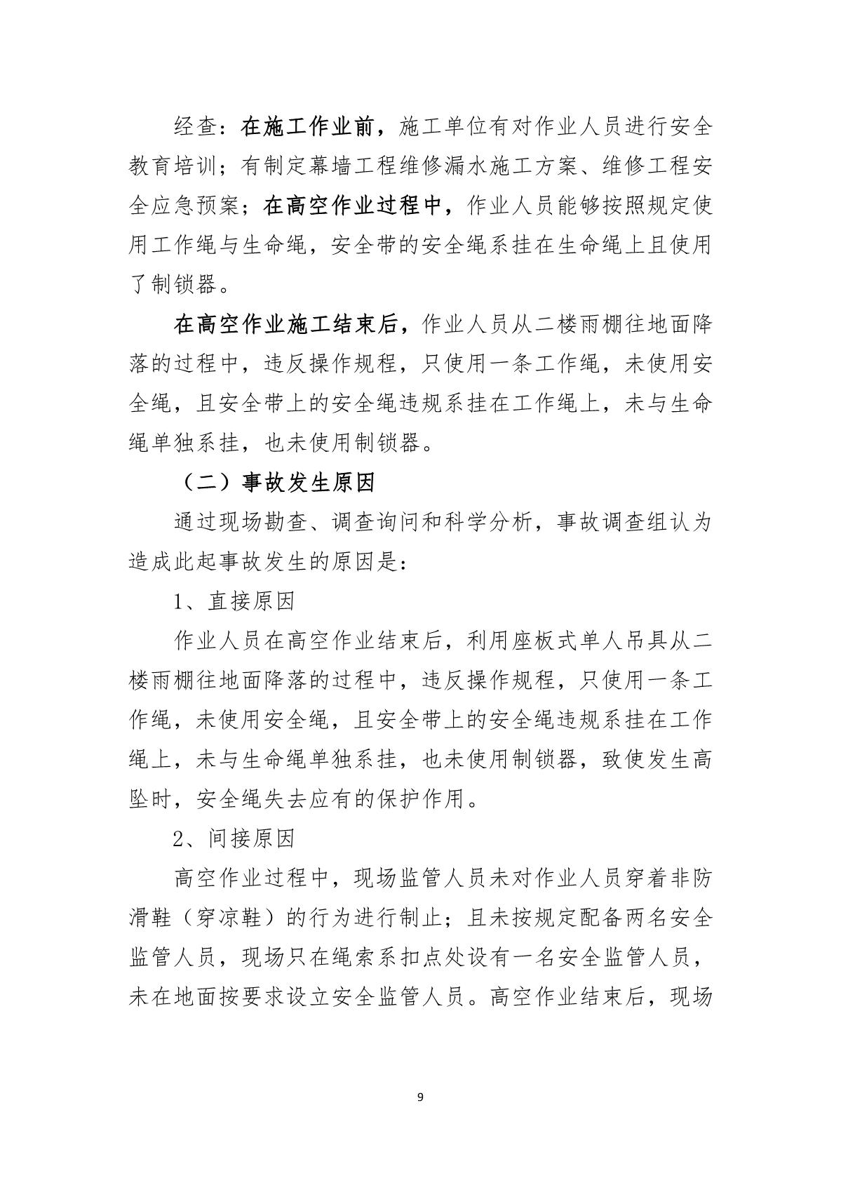 “9.12”福田區(qū)萬科濱海云中心死亡事故調(diào)查報告