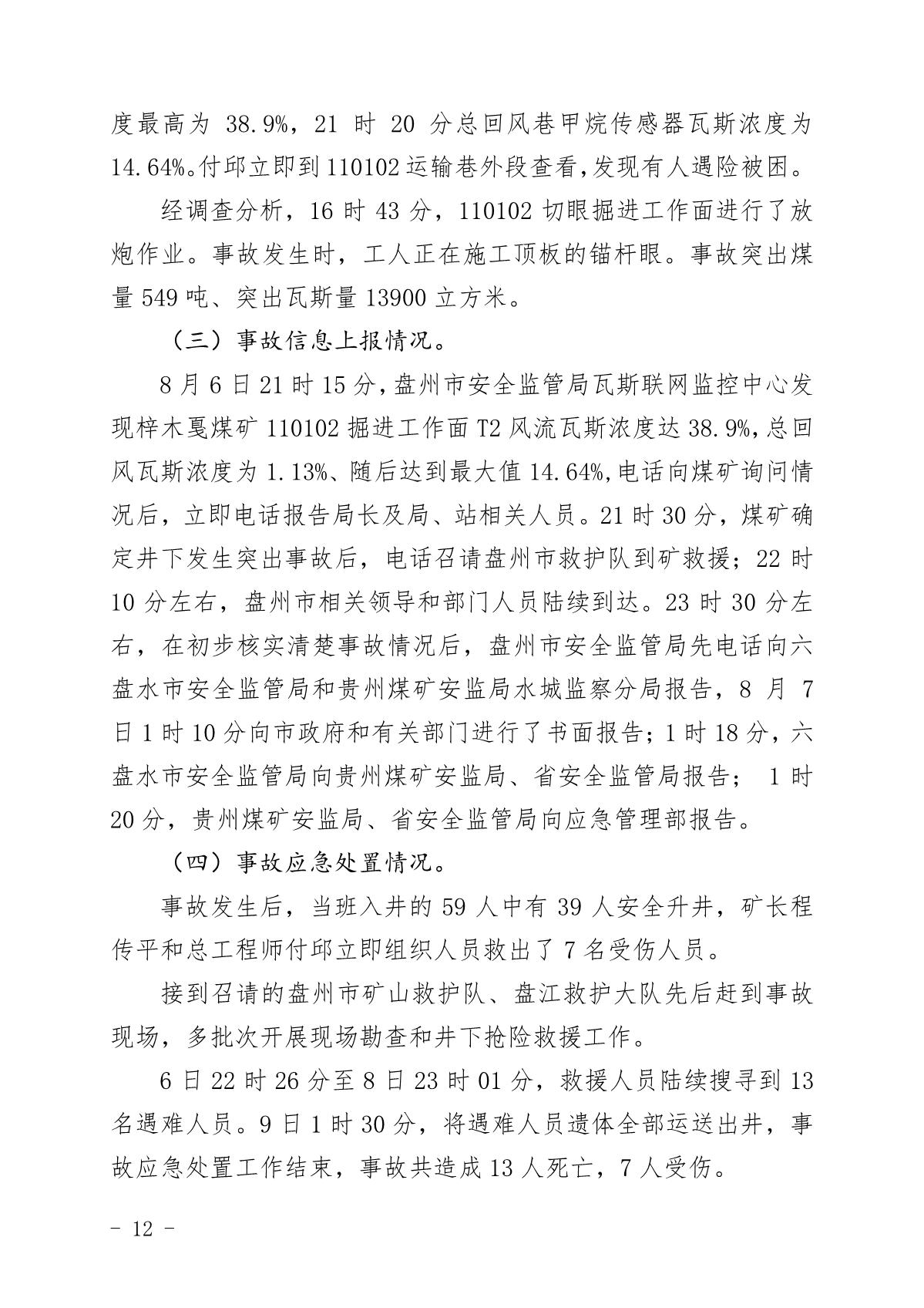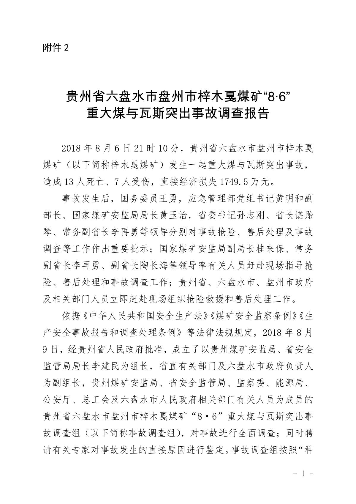 貴州六盤水梓木戛煤礦“8·6”重大煤與瓦斯突出事故調(diào)查報(bào)告