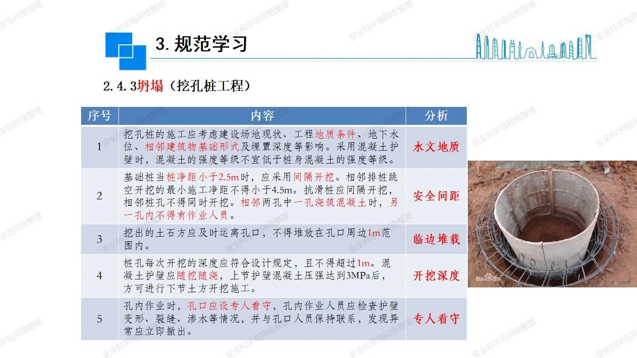 那么,坍塌事故發(fā)生的原因何在? (1)工程結(jié)構(gòu)設(shè)計(jì)不合理或計(jì)算失誤。 (2)施工前沒有編制切實(shí)可行的施工組織設(shè)計(jì)和專項(xiàng)施工方案,未做具體技術(shù)安全措施交底,特定施工項(xiàng)目未經(jīng)專家評(píng)審論證。 (3)腳手架、模板支撐、起重設(shè)備結(jié)構(gòu)設(shè)計(jì)不合理或計(jì)算失誤。 (4)建筑物結(jié)構(gòu)質(zhì)量低劣,安全性能差,地基不穩(wěn)定,不均勻沉降。 (5)建筑物結(jié)構(gòu)支撐連接(焊接)不牢固,超載、外力沖擊或嚴(yán)重偏心載荷造成失穩(wěn)等。 (6)腳手架及高大模板支架架體結(jié)構(gòu)不符合設(shè)計(jì)與規(guī)范要求,整體安全穩(wěn)定性差、超載或嚴(yán)重偏心荷載,遇外力沖擊或振動(dòng),不按程序拆除架體等因素造成失穩(wěn)等。 (7)基坑、土石方挖土?xí)r土壁不按規(guī)定留設(shè)邊坡(甚至負(fù)坡度),缺乏支護(hù)或支護(hù)不良,土質(zhì)不良或出現(xiàn)地下水、地表水的滲透,土壁經(jīng)不起重載側(cè)壓力或遇外力振動(dòng)、沖擊等因素造成土壁失穩(wěn)滑坡坍塌。 (8)起重設(shè)備技術(shù)安全性能差,結(jié)構(gòu)強(qiáng)度不夠,安全防護(hù)裝置不完善,垂直起重機(jī)與建筑物拉結(jié)差,出現(xiàn)超載、碰撞、升降過度或違章操作等原因,造成起重設(shè)備倒塌。 (9)現(xiàn)場(chǎng)作業(yè)環(huán)境不良,安全防護(hù)設(shè)施缺乏。 (10)施工現(xiàn)場(chǎng)管理松弛,各項(xiàng)質(zhì)量、安全管理制度流于形式。 (11)片面追求經(jīng)濟(jì)利益,偷工減料,施工質(zhì)量差。 (12)施工隊(duì)伍素質(zhì)差,不執(zhí)行法規(guī)、標(biāo)準(zhǔn),違章指揮、違章作業(yè),思想上存在盲目性、冒險(xiǎn)性、隨意性。 如何預(yù)防坍塌事故? (1)根據(jù)設(shè)計(jì)與規(guī)范要求,認(rèn)真編制施工組織設(shè)計(jì)和專項(xiàng)施工技術(shù)方案、應(yīng)急預(yù)案,做好特定施工項(xiàng)目專家評(píng)審論證及技術(shù)安全交底工作。 (2)支架、腳手架等搭設(shè)完成后應(yīng)組織相關(guān)部門驗(yàn)收。支架還應(yīng)按方案要求進(jìn)行堆載預(yù)壓。 (3)嚴(yán)格控制模板支架、腳手架等承受的荷載,模板、腳手架及其支撐體系的施工荷載應(yīng)做到均勻分布,并不得超過設(shè)計(jì)要求。嚴(yán)禁超載、對(duì)構(gòu)筑物進(jìn)行外力沖擊或偏心載荷。 (4)基坑、土石方挖土?xí)r土壁按規(guī)定留設(shè)邊坡,嚴(yán)格按照設(shè)計(jì)坡度進(jìn)行放坡開挖,進(jìn)行有效支護(hù)和排水,并設(shè)置專人對(duì)邊坡穩(wěn)定性進(jìn)行檢測(cè)?;討?yīng)基坑頂邊緣1m范圍內(nèi)禁止堆放材料。 (5)加強(qiáng)起重設(shè)備的采購(gòu)管理,嚴(yán)禁使用不合格的起重設(shè)備,并定期進(jìn)行檢測(cè),確保各項(xiàng)性能和安全防護(hù)裝置良好;加強(qiáng)起重設(shè)備的安裝、拆除管理;加強(qiáng)起重設(shè)備的使用管理,嚴(yán)禁超載、碰撞或違章操作;加強(qiáng)對(duì)起重設(shè)備操作人員、指揮人員、安拆人員的安全教育培訓(xùn),考核合格后持證上崗。 (6)加強(qiáng)施工現(xiàn)場(chǎng)管理,設(shè)置有效安全防護(hù)設(shè)施。 (7)加強(qiáng)對(duì)從業(yè)人員的培訓(xùn)教育,提高隊(duì)伍素質(zhì),強(qiáng)化質(zhì)量、安全意識(shí)。 (8)強(qiáng)化工程質(zhì)量報(bào)驗(yàn)和檢驗(yàn)、簽證制度,不經(jīng)檢驗(yàn)合格,不準(zhǔn)進(jìn)行下道工序施工。 (9)發(fā)現(xiàn)坍塌事故的險(xiǎn)情,要認(rèn)真分析原因,積極研究提出排除隱患的整改措施,并監(jiān)督執(zhí)行。