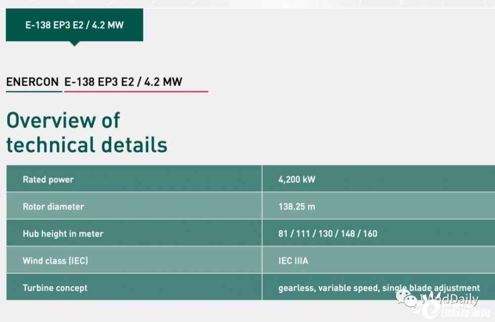 Enercon E-138 EP3風(fēng)電機組技術(shù)參數(shù):
