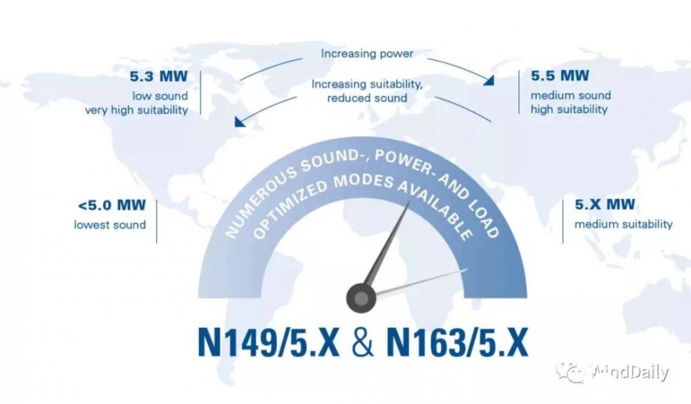 N149/4500 機(jī)型曾是Nordex主打機(jī)型。為了跟上市場(chǎng)競(jìng)爭(zhēng)的腳步,Nordex 如今也正朝著大兆瓦、大葉輪趨勢(shì)邁進(jìn)。今年Nordex也推出了6.X MW陸上風(fēng)電機(jī)組,葉輪也擴(kuò)大到163米。