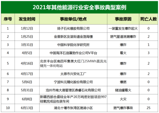 2021年上半年能源安全事故匯總
