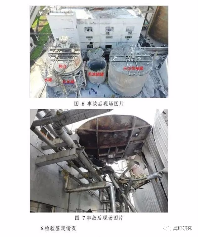 此時,項目經理讓張成到罐體底部清理漏出的漿液。當張成沿著罐體周圍的梯子剛剛下到地面,突然聽到一聲巨響,他的手和腿都被什么東西刮傷了,開始流血。他顧不上自己的傷,抬頭一看發(fā)現罐頂已經沒了。他趕緊往罐頂跑,發(fā)現原來在罐頂的6名同事都已不見蹤影。此時,公司的另一名同事趕到現場。他們報警后,立即開始在現場搜尋同事。沒多久,他們就找到所有的同事,有的躺在罐子旁的地上,有的在附近的泵房頂上,最遠的人被爆炸沖出10多米遠。