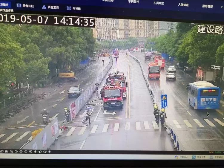 支隊指揮中心接警后,迅速啟動市政設(shè)施故障事件應(yīng)急預(yù)案并報告支隊領(lǐng)導(dǎo)。領(lǐng)導(dǎo)指揮崗迅速通知轄區(qū)中隊趕赴事發(fā)現(xiàn)場進(jìn)行交通管控并指派直屬大隊進(jìn)行增援。視頻巡查崗打開事發(fā)路段前后球機及高空云臺對事發(fā)路段進(jìn)行實時監(jiān)測。