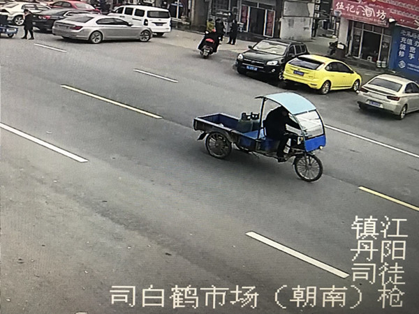 功夫不負(fù)有心人,民警終于在丹陽丹伏路與觀鶴路交叉口,發(fā)現(xiàn)了拉了兩只煤氣瓶的嫌疑車輛。通過監(jiān)控跟進(jìn)和倒查,警方鎖定了該車最后駛向丹陽司徒西麻村道里一段軌跡。但是,嫌疑人外貌特征不明顯。