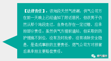 某男在早上散步過程中,地下天然氣爆炸造成死亡。頭一天晚上11點就知道該區(qū)域有天然氣泄漏,燃?xì)夤疽呀?jīng)提前通知了附近居民。