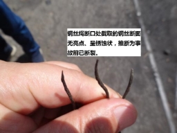 圖4鋼絲繩另一端斷口情況 圖5鋼絲繩另一端斷口處的鋼絲情況