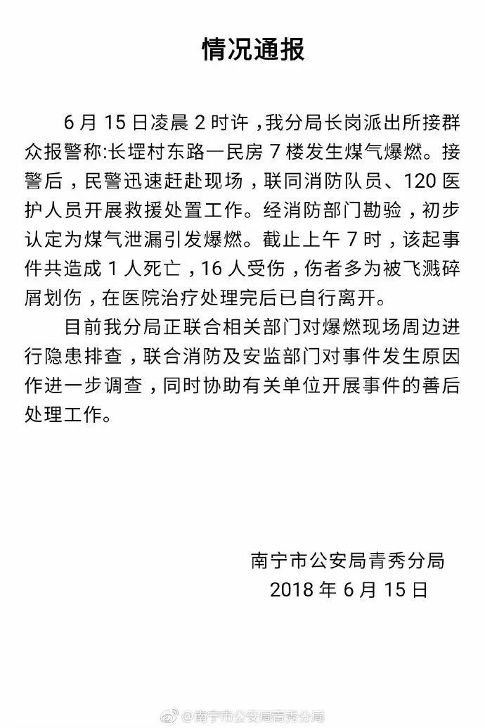 1死16傷!今天凌晨南寧長堽村一民房發(fā)生爆炸,最新警方通報(bào)來了