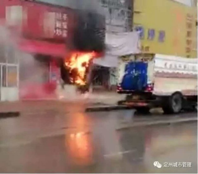 距離起火點(diǎn)不到四米的地方就是兩個(gè)煤氣罐,雖然有間隔,但火勢(shì)一大,這兩個(gè)煤氣罐將成為隨時(shí)可能爆炸的 " 炸彈 ",時(shí)刻威脅著 4 名飯店員工的生命和過(guò)往行人的安全。