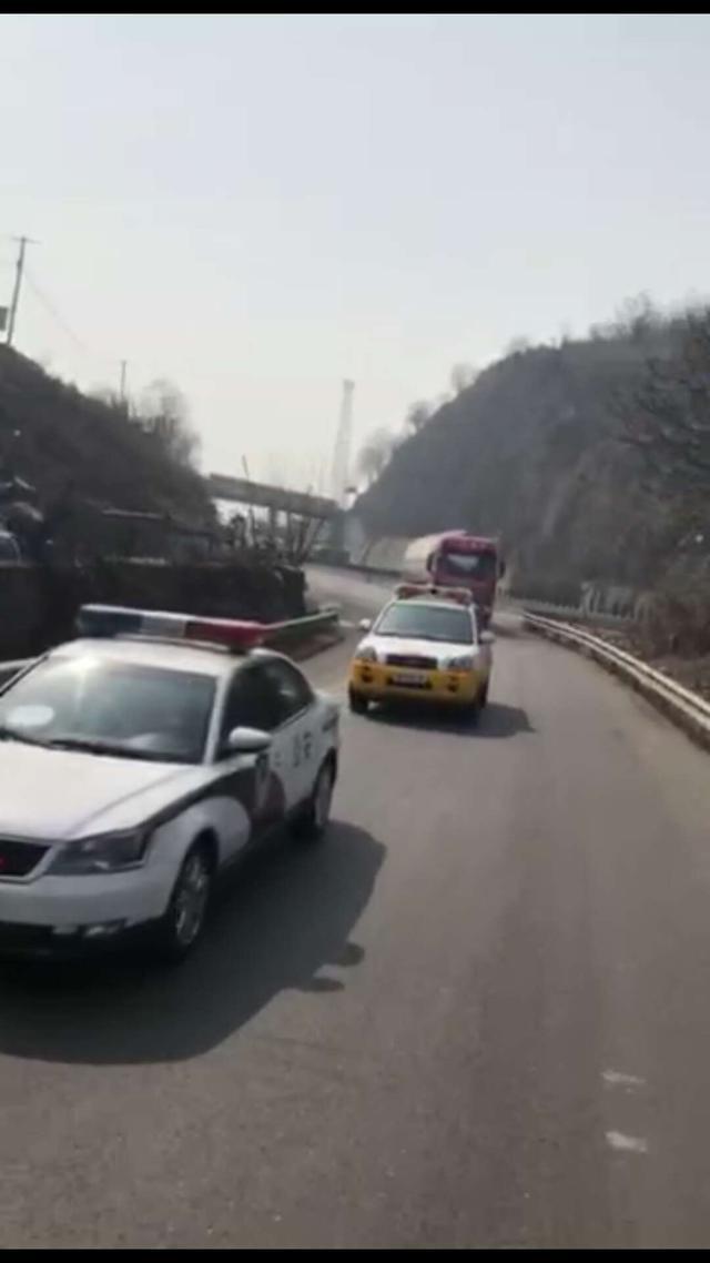 因事發(fā)地為當?shù)鼗睒滗伌宕迕窬幼∠鄬γ芗瘏^(qū)域,一旦有火點引發(fā)爆炸,后果不堪設想。經(jīng)現(xiàn)場民警、消防人員與該車駕駛員和押運員商定后,決定采取由警車、路政巡邏車在前方帶道,該?;奋嚲o隨其后,消防車在尾部觀察警戒的方式,駛向距離晉冀交界6公里下高速且人員相對較少的開闊場地再進行處置。