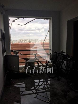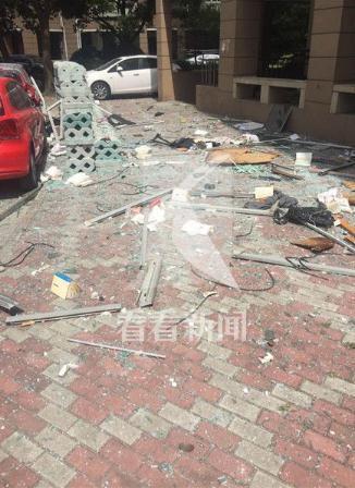 事發(fā)時(shí),周邊居民聽(tīng)到巨響,隨后有人感到震動(dòng),事故發(fā)生后,該幢大樓內(nèi)不少居民家中受到殃及,幾個(gè)樓層的居民家里玻璃窗被震碎,大量玻璃碎片、窗框、書籍等雜物掉落在小區(qū)通道上,多輛轎車擋風(fēng)玻璃被砸穿,小區(qū)草坪、通道上到處是散落的碎玻璃渣和各種生活用品。